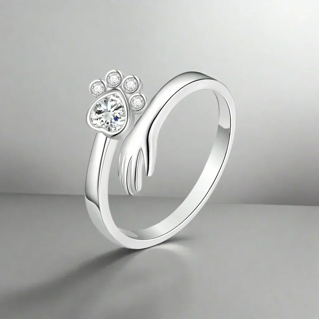 Verstellbarer Ring mit Pfote aus Sterlingsilber – Design Hand in der Pfote